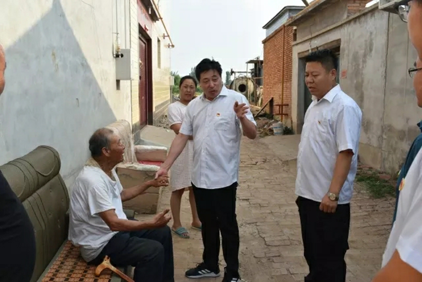 南陈屯乡党委书记杜金月、乡长卜照奇带领班子成员慰问娘娘庙村89岁高龄的抗美援朝老党员刘福荣