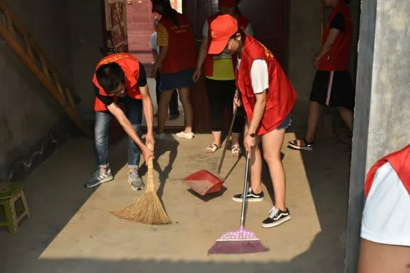 志愿者们为抗美援朝老党员刘福荣家打扫院子