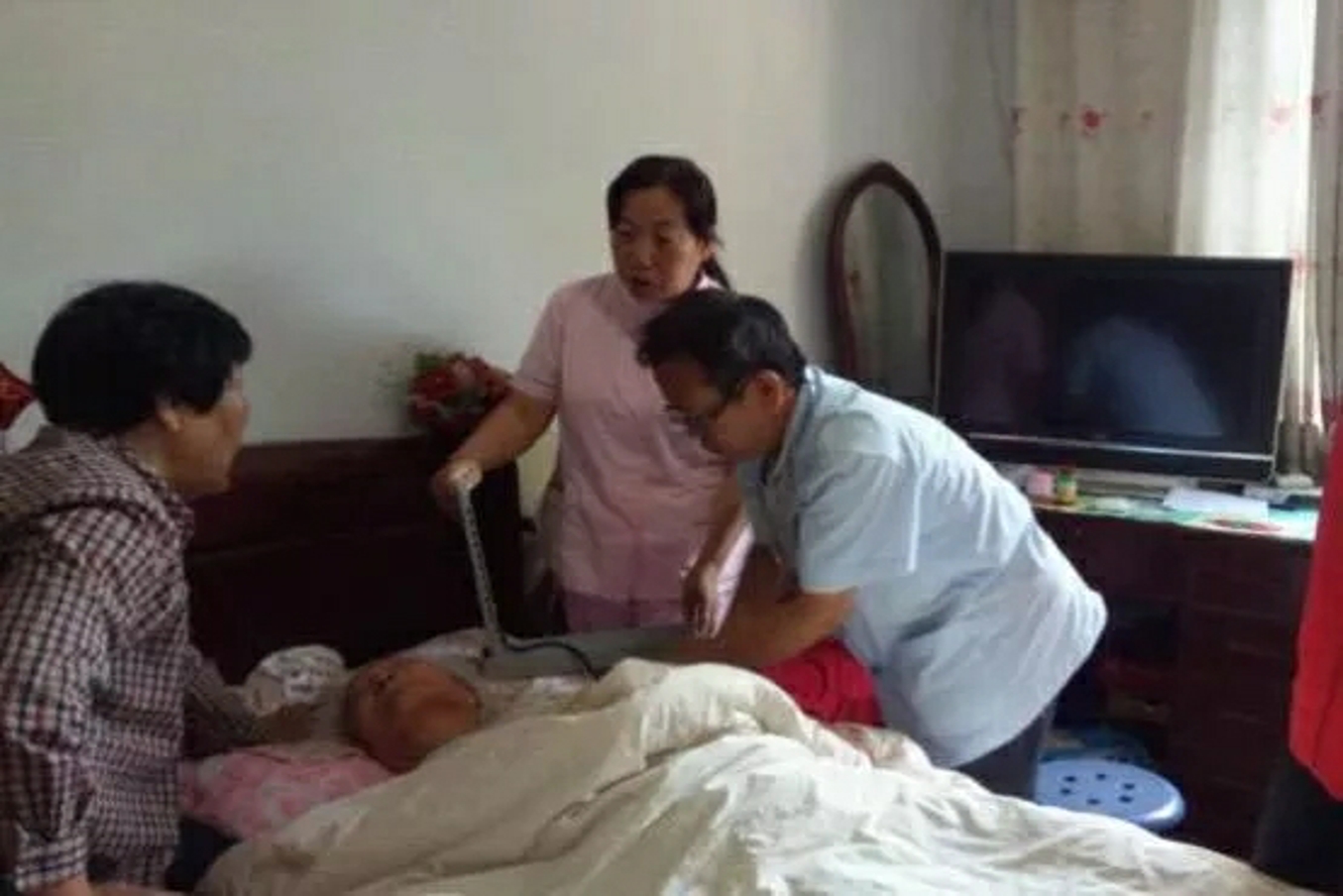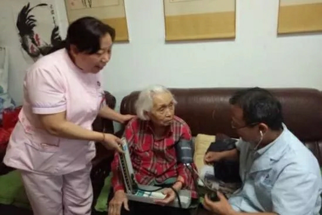 署西社区党总支联合辖区二门诊在职党员深入老党员家中,询问老人的健康状况、叮嘱注意夏季饮食健康并为老人义诊